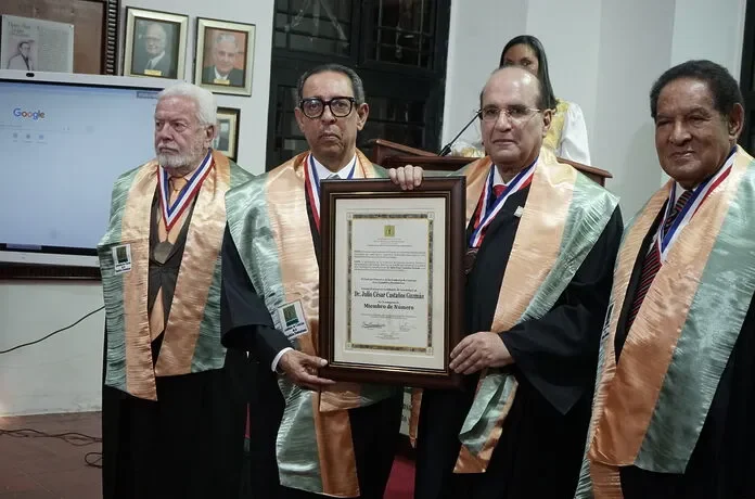 Con esta investidura, la Academia reconoce la destacada labor del Dr. Castaños Guzmán en el fortalecimiento del Estado de derecho y de la institucionalidad democrática en la República Dominicana.