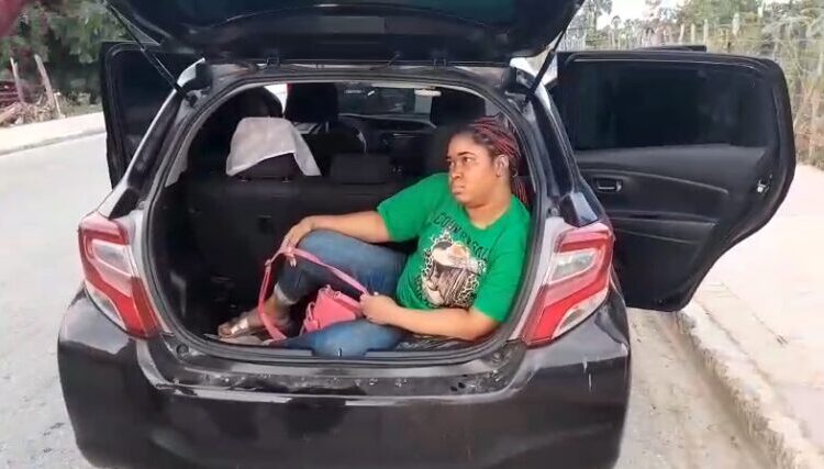 Durante la inspección vehicular, fue encontrada una mujer de nacionalidad haitiana en condición migratoria irregular, dentro del baúl.