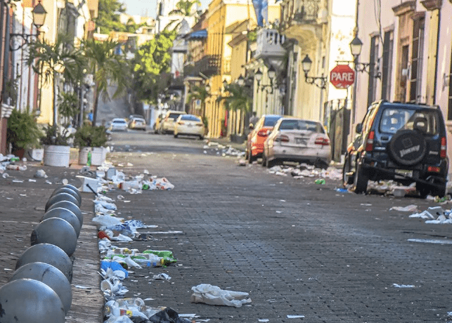 El fotógrafo profesional Gustavo Borges realizó imágenes que fueron compartidas en Instagram, dejando ver una ciudad colonial llena de basura, botellas de vidrio, algunas rotas, plásticos, envases foam, papel que se mezclaban con el olor a orine y bebidas alcohólicas, entre otras.