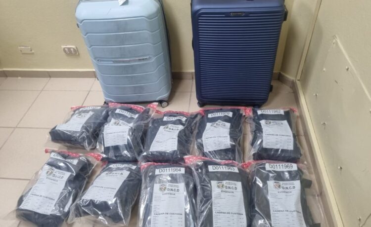 En presencia de un fiscal se procedió a abrir el equipaje, encontrando en su interior 21 paquetes de la sustancia, envueltos en prendas de vestir, con un peso superior a las 24 libras.