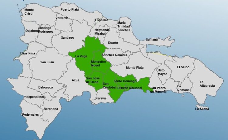 El Centro de Operaciones de Emergencias (COE) informó este jueves la ampliación del nivel de alerta verde para seis provincias y el Distrito Nacional, ante las condiciones meteorológicas inestables provocadas por una vaguada que incide sobre el territorio nacional.