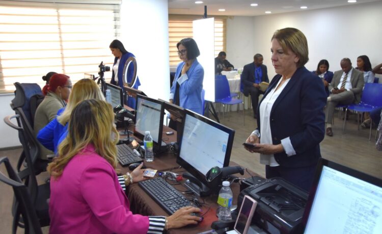 Colaboradores de la Dirección General de Jubilaciones y Pensiones a Cargo del Estado (DGJP), participan en un operativo de captura de datos biométricos, por parte de la Junta Central Electoral (JCE), con el objetivo de contribuir a la actualización y validación de datos, para el nuevo documento de identidad de los ciudadanos.