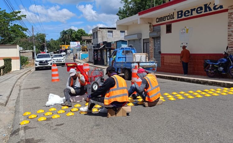 El alcalde del distrito municipal Don Juan, Monte Plata, Leoncito José (Tito) junto al Instituto Nacional del Tránsito (Intrant) comenzaron la instalación de reductores de velocidad en siete puntos de esta demarcación.
