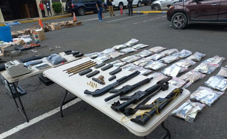 A través de informes de inteligencia, miembros del Ministerio Público ejecutaron la operación, donde apresaron a tres hombres y una mujer e incautaron además tres fusiles, una escopeta, una pistola, municiones y varios cargadores.
