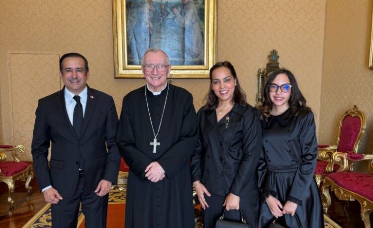Embajador Víctor Suárez y familia visita en una reunión privada con el secretario de estado del Vaticano monseñor Prieto Parolín donde trataron temas de la República Dominicana y la situación mundial.