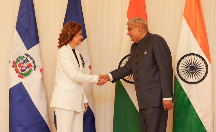 Nueva Delhi, India.- El vicepresidente de la República de India, S.E. Shri Jagdeep Dhankhar, y la vicepresidenta de la República Dominicana, S.E. Raquel Peña Rodríguez, se reunieron en Nueva Delhi, India, el 4 de octubre de 2023, para un diálogo político de alto nivel entre los dos países, en el que mantuvieron discusiones productivas sobre asuntos bilaterales, regionales y multilaterales de interés mutuo.