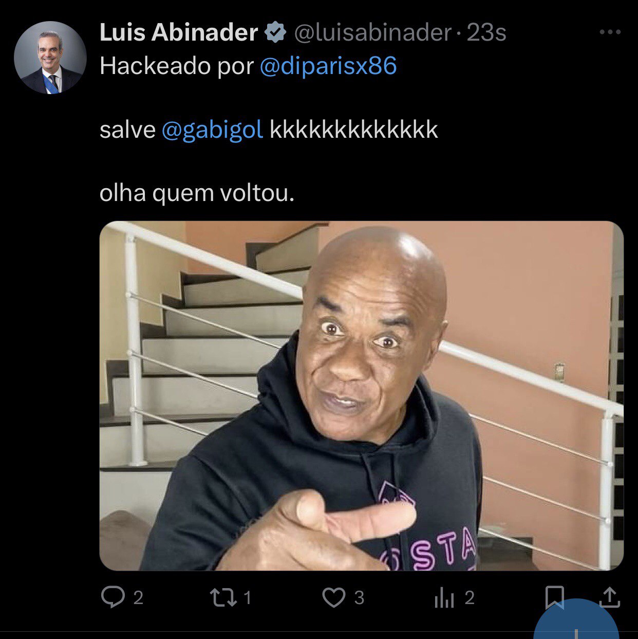 Santo Domingo.– A dos días para las elecciones presidenciales y congresuales, la cuenta del presidente Luis Abinader en la red social X fue hackeada.