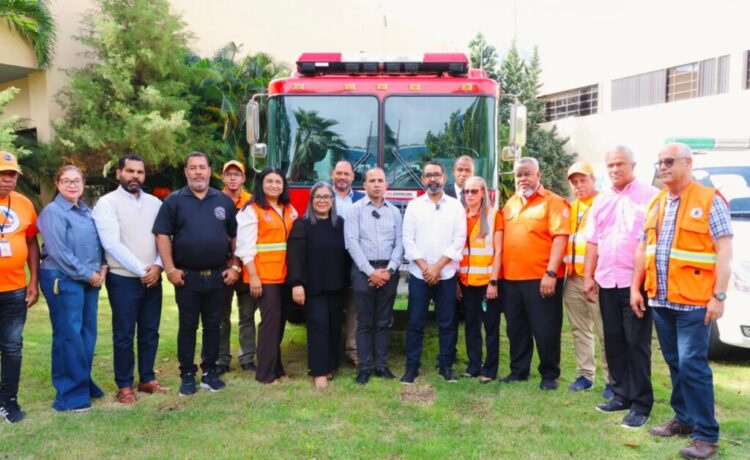 Con la finalidad de reforzar las labores preventivas y de respuesta a emergencias, el Gobierno dominicano, a través de la Dirección Ejecutiva de la Defensa Civil, entregó este día un camión de bomberos, una camioneta nueva 2025 todoterreno y una ambulancia, a la oficina de la institución y a la alcaldía del distrito municipal de Tireo, provincia La Vega.