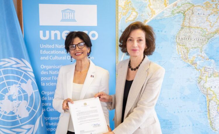 París, Francia- La embajadora Larissa Veloz presentó hoy sus Cartas Credenciales ante la directora general de la Organización de las Naciones Unidas para la Educación, la Ciencia y la Cultura (UNESCO), Audrey Azoulay, acreditándose oficialmente como delegada permanente de la República Dominicana ante esta organización multilateral.