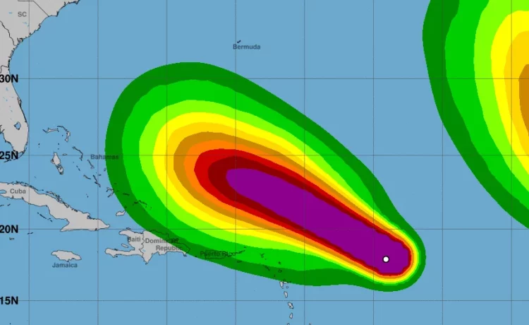 Según el último reporte del NHC, el huracán se encontraba aproximadamente 910 kilómetros al este de las Islas de Sotavento (un archipiélago de las Antillas Menores).