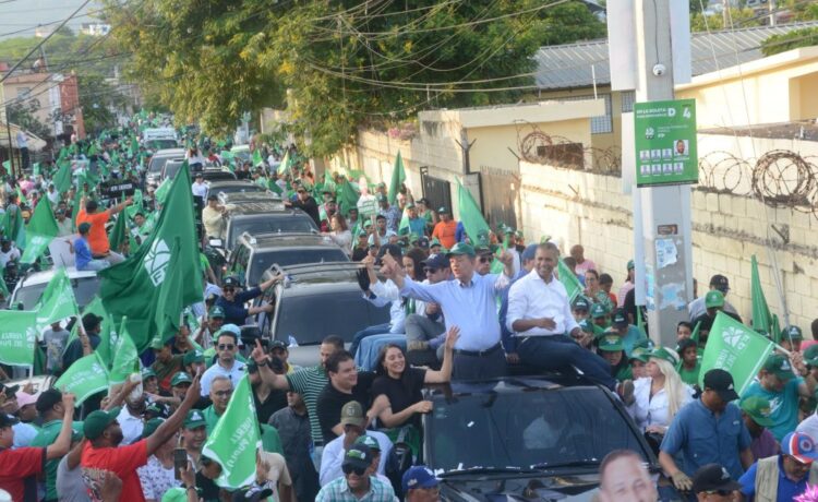 Al inicio de la tarde, el líder opositor encabezó similar actividad en La Vega, donde miles de personas tiñeron de verde los principales barrios de la ciudad olímpica.