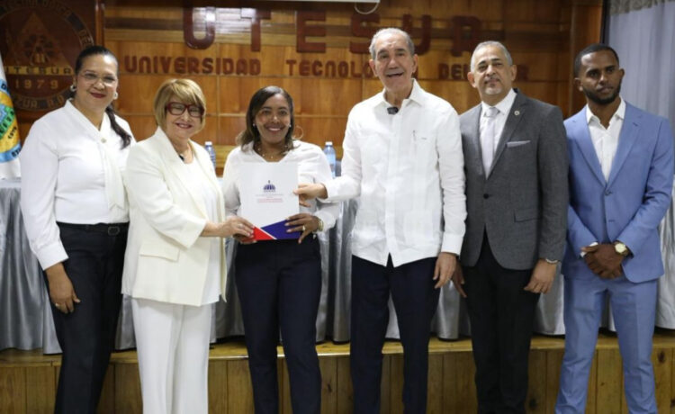 El acto de entrega estuvo encabezado por el ministro del Mescyt, doctor Franklin García Fermín; el coordinador del Programa de Becas Nacionales, Rafael Martínez, y la rectora de la Universidad Tecnológica del Sur (UTESUR), María del Rosario Melo Muñoz.