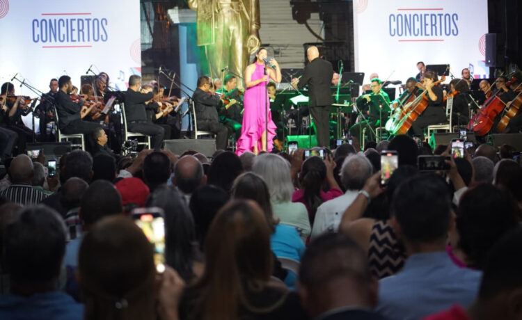 Posteriormente, la cantante lírica Janette Márquez interpretó obras clásicas y populares, dando paso a la segunda parte del concierto, cuyo repertorio incluyó icónicas composiciones dominicanas, entre las que se encontraban “La bilirrubina”, “Compadre Pedro Juan” y “Caña brava”.