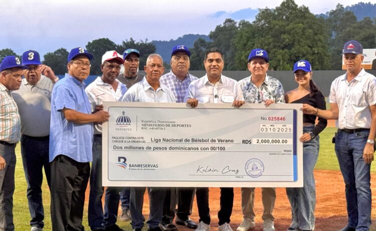 El ministro de Deportes, Kelvin Cruz, entregó este viernes un aporte de 2 millones de pesos a la Liga de Béisbol de Verano, que organiza la Federación Dominicana de Béisbol (Fedom).