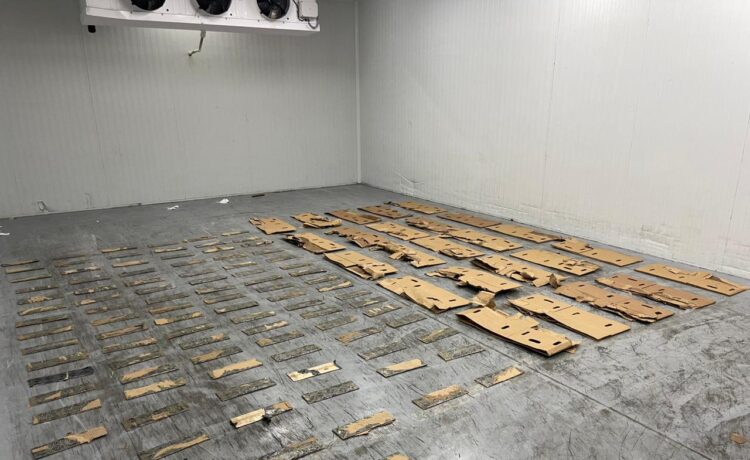 En presencia de un fiscal, se procedió a realizar una revisión más exhaustiva, ocupando dentro del contenedor, decenas de cajas cargadas de banano, con un doble fondo, conteniendo en su interior las 97 láminas de cocaína.