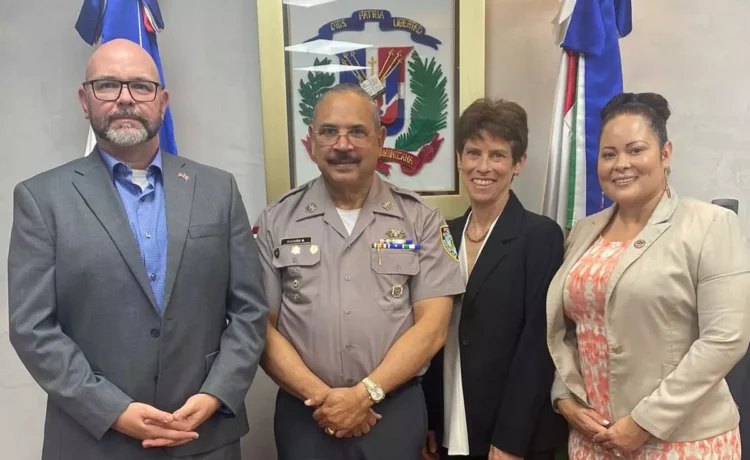 Santo Domingo.- El subdirector general de la Policía Nacional, general Juan Hilario Guzmán Badia, sostuvo este miércoles una reunión con Suzanne Goldberg, experta en derechos civiles y diversidad; Paul Butki, director adjunto de la sección internacional de asuntos antinarcóticos para la aplicación de la Ley (INL) de la embajada de los Estados Unidos en el país, y Rosy Peña, asesora de asuntos policiales de dicha entidad.
