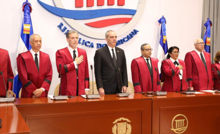 En su discurso, el presidente del Tribunal Constitucional destacó la presencia del presidente Abinader, de quien resaltó que “no ha faltado a ninguna de las audiencias solemnes celebradas”.