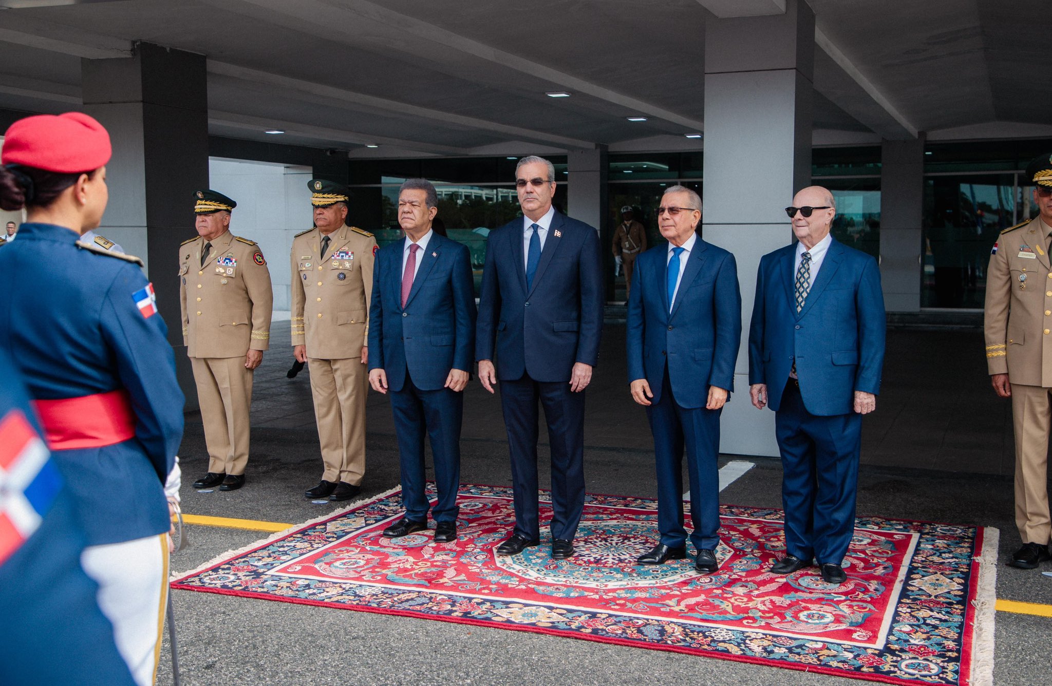 La reunión de alto nivel se lleva a cabo en el Ministerio de Defensa, donde a su llegada, el jefe de Estado y los expresidentes fueron recibidos con honores militares, que incluyeron una salva de 21 disparos de artillería y la entonación del Himno Nacional dominicano.