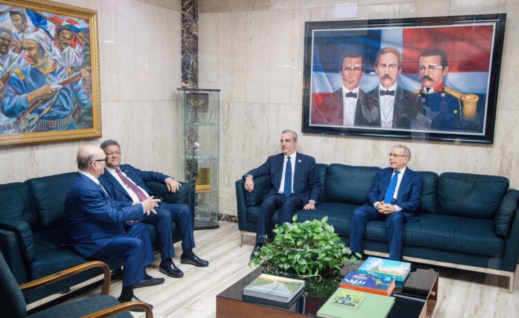 Santo Domingo.– El presidente Luis Abinader se encuentra reunido con los exmandatarios Leonel Fernández, Danilo Medina e Hipólito Mejía, en un encuentro convocado para abordar temas de seguridad nacional, la crisis que atraviesa Haití y su impacto en la República Dominicana.