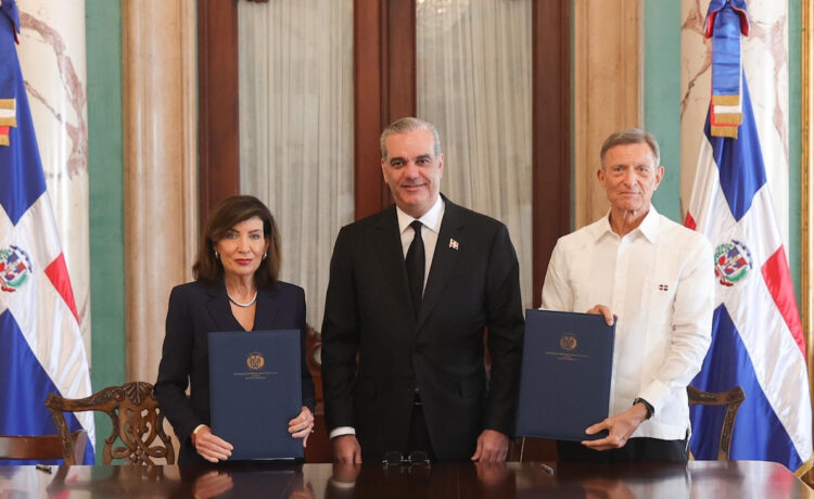 El presidente de la República Dominicana, Luis Abinader, y la gobernadora del estado de Nueva York, Kathy Hochul, anunciaron este martes un acuerdo histórico para reafirmar y fortalecer los lazos culturales, sociales y económicos entre ambos gobiernos, mediante la firma de una Declaración de Intención que establece nuevas áreas de cooperación en preparación ante desastres, innovación agrícola y desarrollo económico, con el propósito de impulsar un crecimiento sostenible y mutuamente beneficioso.