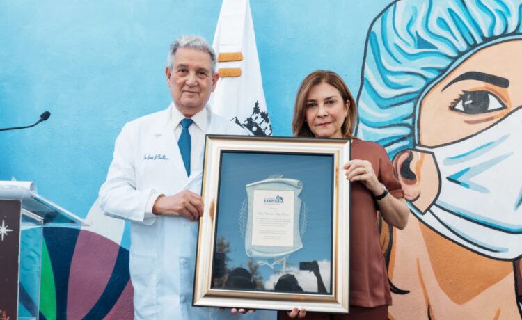 La alcaldesa del Distrito Nacional, Carolina Mejía, recibió un reconocimiento del doctor José Joaquín Puello, presidente de la Ciudad Sanitaria Dr. Luis Eduardo Aybar, durante la inauguración del parque lineal Ciudad Sanitaria, el pasado jueves.