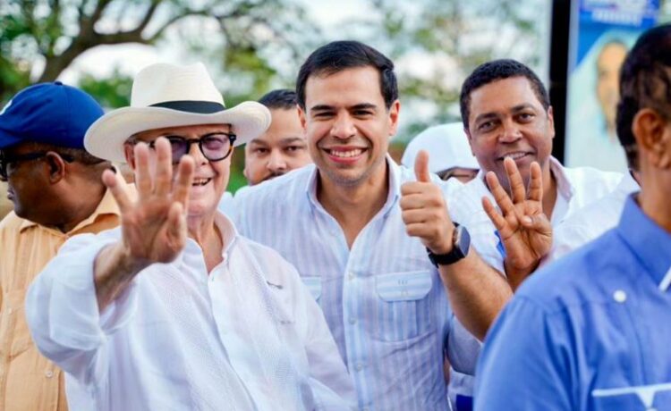 Junto al expresidente Hipólito Mejía, Victor D’ Aza, Iván Hernández Guzmán, Fernándo Durán y Luis Delgado, el alto dirigente político recorre poblados de esa importante plaza electoral