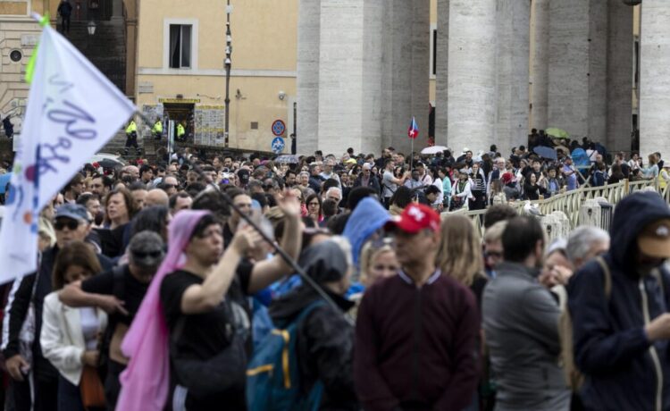 El flujo de público que desfila delante del féretro de Francisco es constante y a primera hora de la mañana había miles de personas esperando en distintas filas que se extendían hasta zonas aledañas al Vaticano, en medio de un estricto control de la Policía y la Protección Civil.