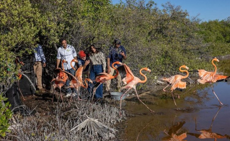 12 flamencos del Caribe (Phoenicopterus ruber) fueron liberados en las Salinas de Baní, una zona protegida con condiciones seguras y alta disponibilidad de alimento, donde además habita un grupo estable de la especie.
